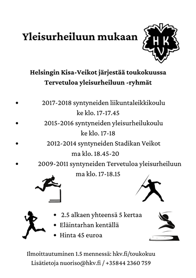 Toukokuussa järjestämme 4-13 vuotiaille viiden kerran kokeilujaksot, josta on hyvä jatkaa kesän yleisurheiluryhmiin.